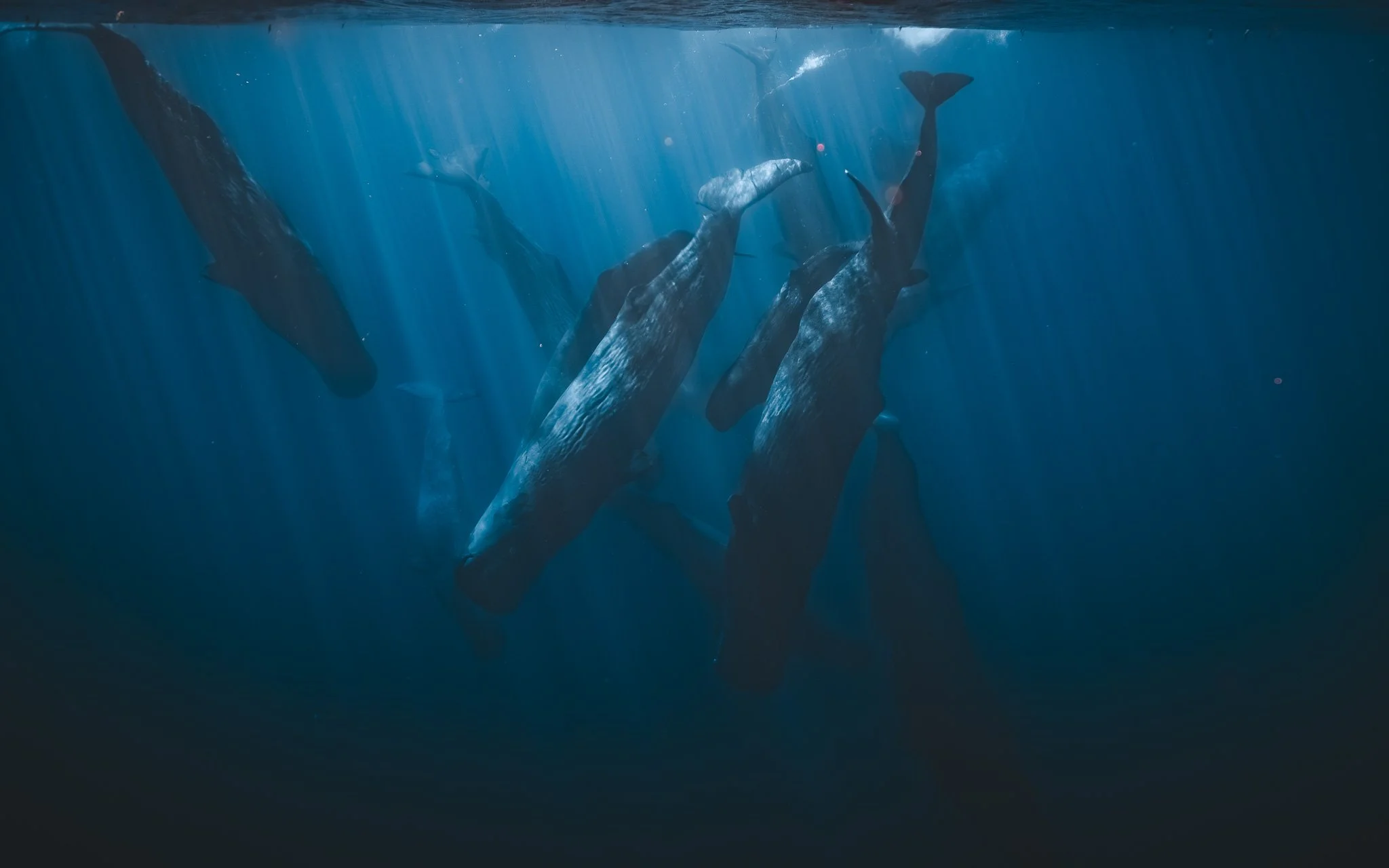For example, during our 2025 expedition, we had the amazing opportunity to see and swim with a Whale shark, a giant pod of Sperm whales and even Orcas !