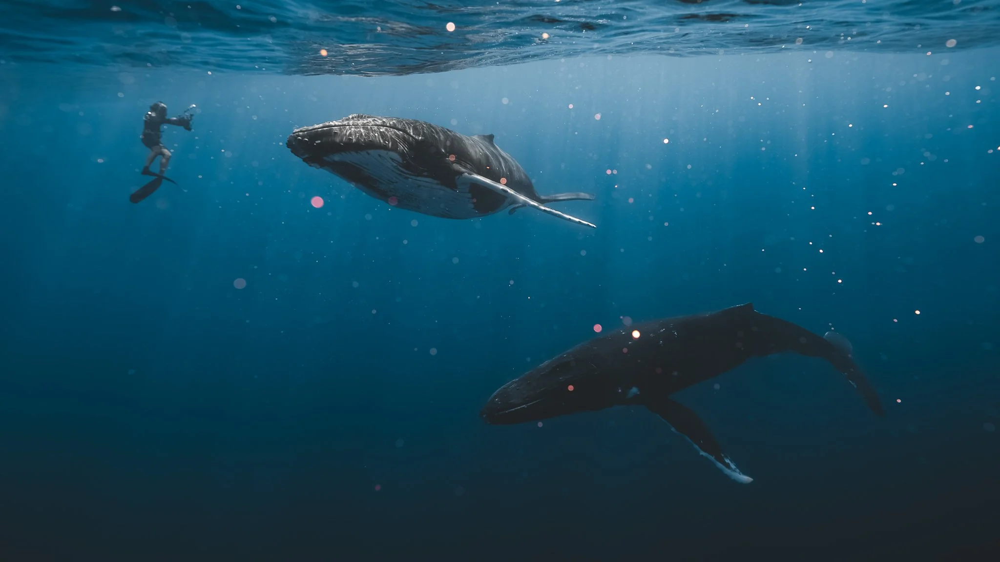 Every year, between mid-July and mid-November, thousands of Humpback whales migrate from Antartica, where they feed, all the way to French Polynesia, where they mate, give birth and raise their calves. A unique opportunity to respectfully get in the water with them !