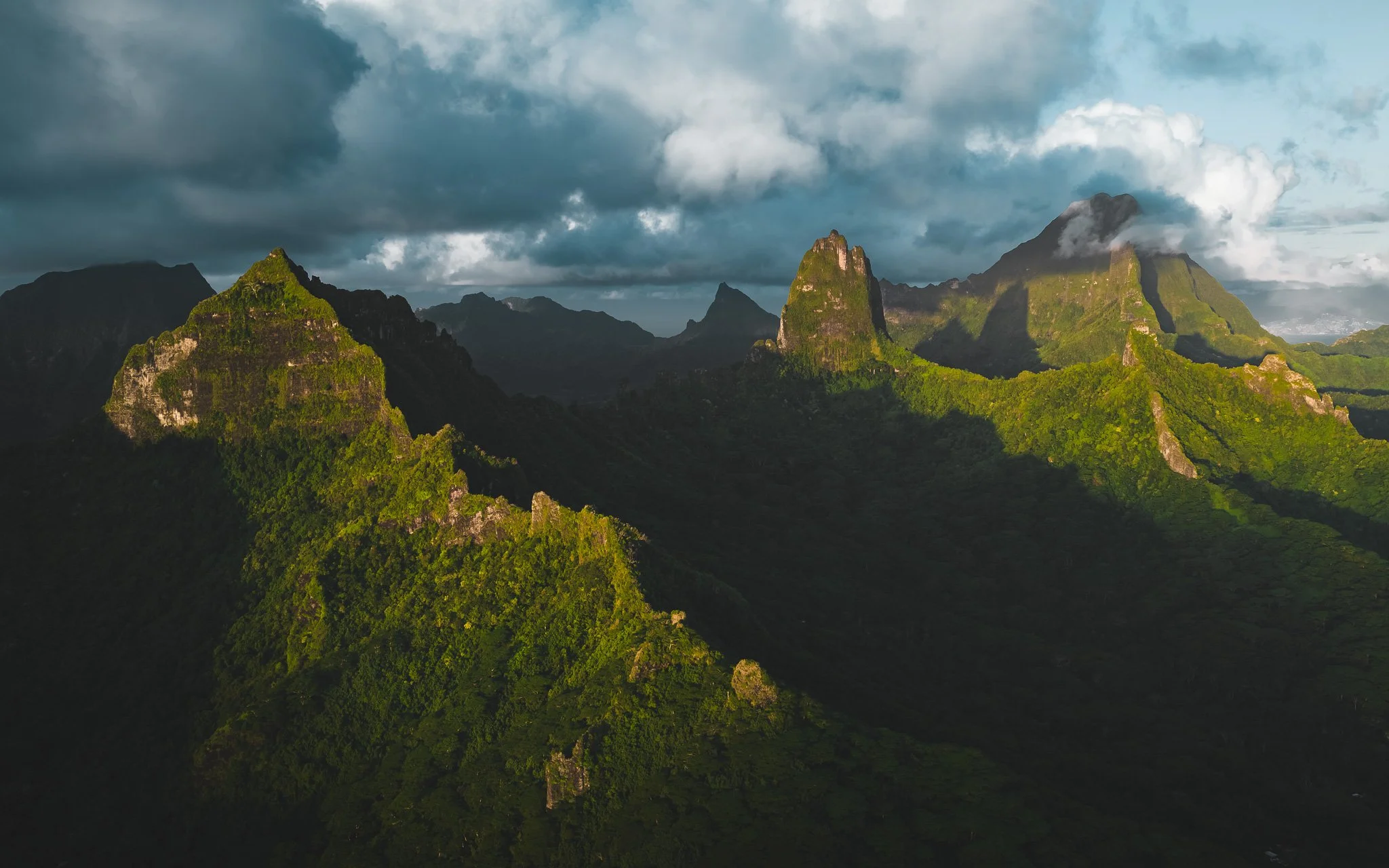 Mo’orea is a small volcanic island where lush green peaks meet the turquoise waters of the ocean.