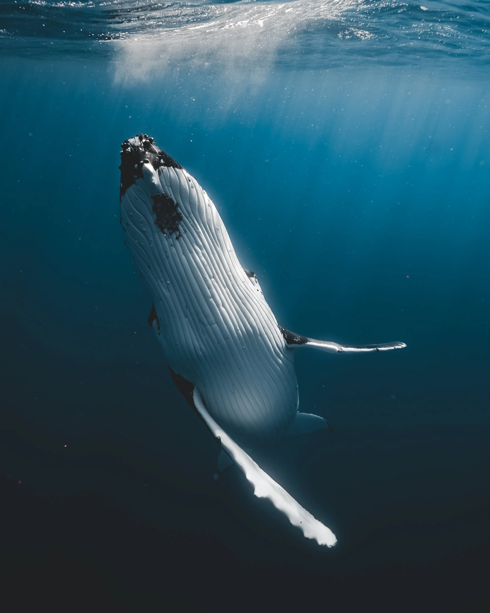 They feed in Antartica and then come back to the warmer waters of French Polynesia to mate and give birth. During their time in French Polynesia, adult Humpbacks don’t feed at all. This is why, it is extremely important to minimize our impact. Respecting the animals is our top priority and we’ll always respect local regulations and analyze the animal’s behavior to make sure we can get in the water safely and without disturbing them.